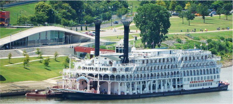 American Queen 1995 largest steam boat built in the United States, refurbished in 2013 based in Memphis and found on Mississippi River. A steam powered boat that can use it paddle wheel as well as Z-drive that can propel the boat 360 degrees.